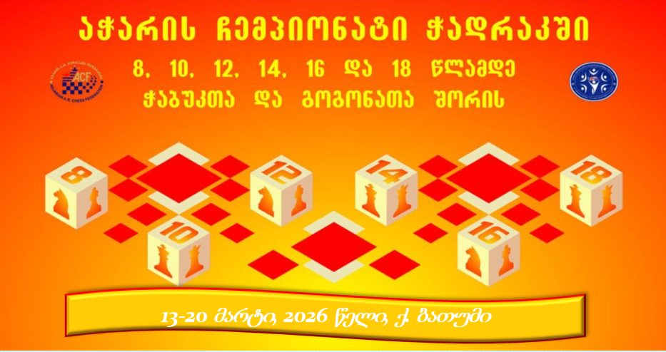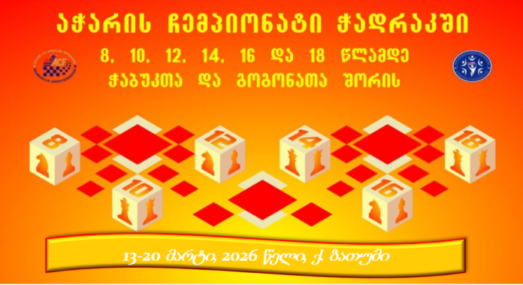 აჭარის ჭადრაკის ფედერაციის ორგანიზებითა და აჭარის სპორტის დეპარტამენტის ფინანსური მხარდაჭერით, 13-20 მარტს, მუხრან ვახტანგაძის ბათუმის სპორტის სასახლეში აჭარის ჩემპიონატი 8,10,12,14,16 და 18 წლამდე ჭაბუკთა და გოგონათა შორის გაიმართება.
