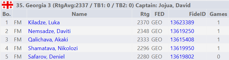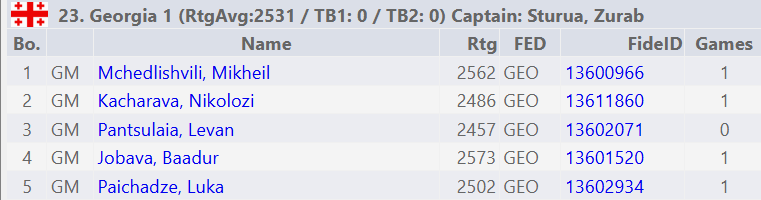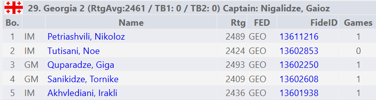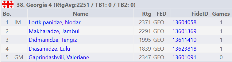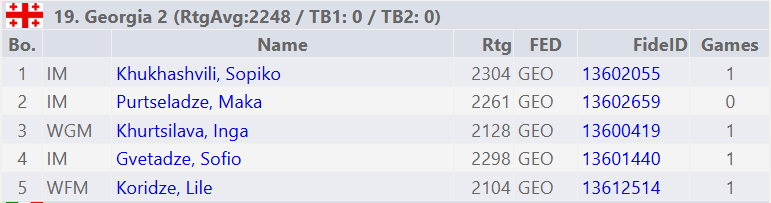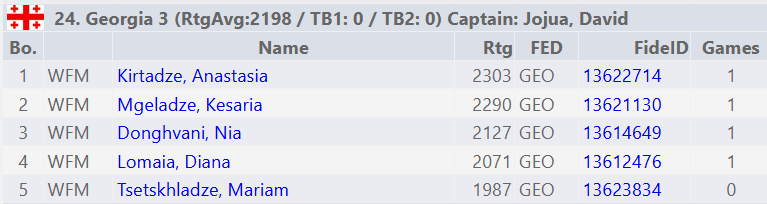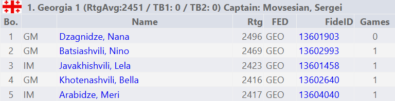 აღსანიშნავია, რომ საქართველოს ქალთა პირველი ნაკრები ევროპის გუნდური ჩემპიონატის მთავარი ფავორიტია (საქართველო 1, მოთამაშეთა საშუალო რეიტინგი 2451), ასევე ქალთა ყველაზე რეიტინგული მოთამაშეები არიან: ნანა ძაგნიძე (GEO, 2496) და ნინო ბაციაშვილი (GEO, 2469)