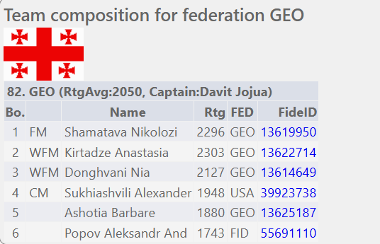 საქართველო ჩემპიონატზე წარდგენილია კლუბით: „დავით ჯოჯუას საჭადრაკო სკოლა“