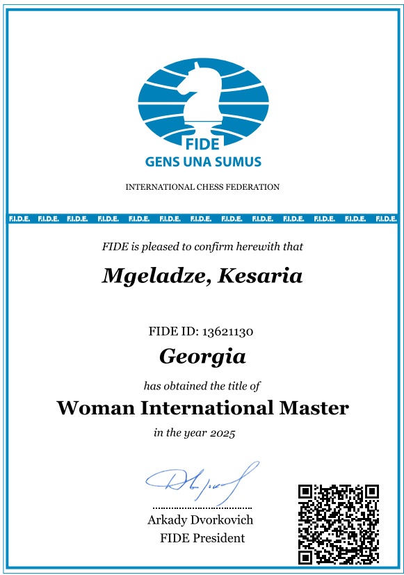 კესარია მგელაძეს ქალთა შორის საერთაშორისო ოსტატის წოდება მიენიჭა