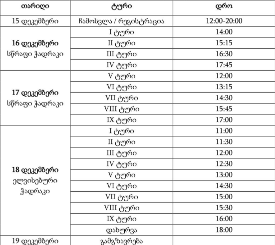 რეგისტრაციის ბოლო ვადა: 12 დეკემბერი, 24:00- საათამდე.