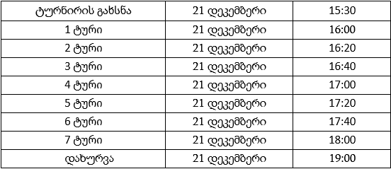 სატურნირო შესატანი: 10 ლარი (უნაღდო ანგარიშწორებით).