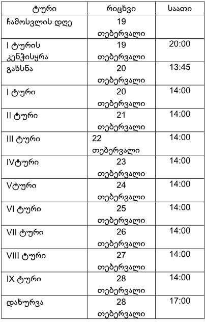 დაგვიანებული რეგისტრაციის შემთხვევაში ჩემპიონატის საწევრო შესატანია 100 ლარი.