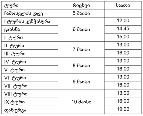 ტურნირის განრიგი:
